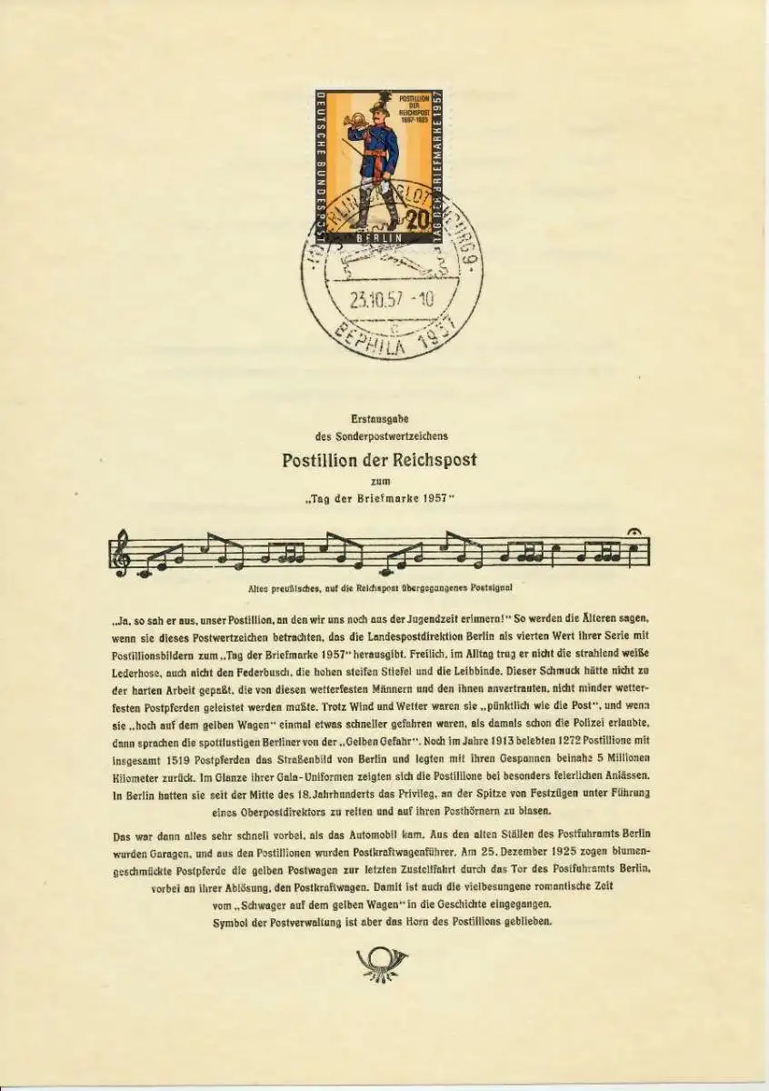 20 Pfg Wert aus der Ausgabe Tag der Briefmarke, Ersttagsblatt Vorläufer-Ausgabe