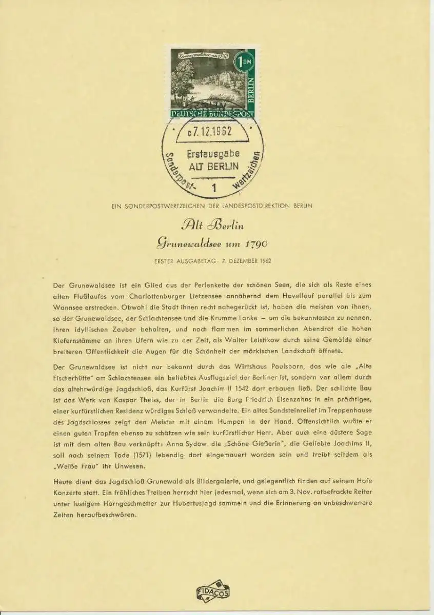 1 DM Wert aus der Ausgabe Alt-Berlin, Ersttagsblatt Vorläufer-Ausgabe
