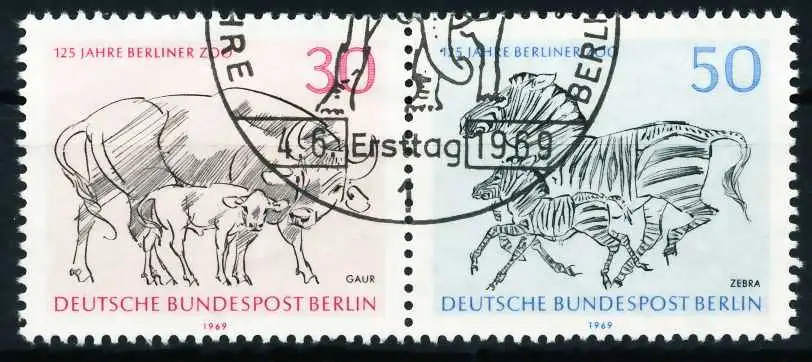 Waagrechter Zusammendruck 30+50 Pfg aus der Blockausgabe 125 Jahre Berliner Zoo (MichelNr.: 1022, 340, 341)