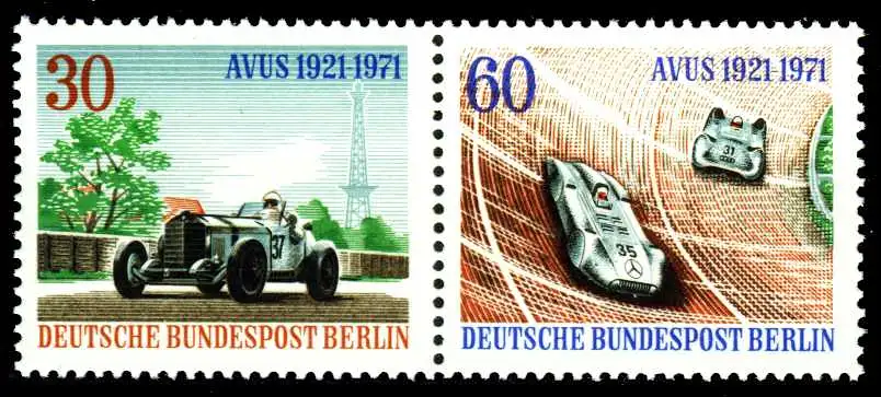 Waagrechter Zusammendruck 30+60 Pfg aus der Blockausgabe 50 Jahre AVUS-Rennen (MichelNr.: 1032, 399, 400)