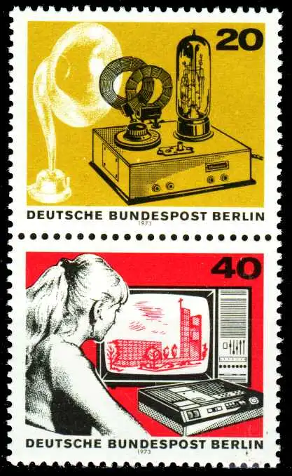 Senkrechter Zusammendruck 20+40 Pfg aus der Blockausgabe 50 Jahre Deutscher Rundfunk (MichelNr.: 1043, 455, 457)