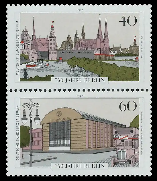 Senkrechter Zusammendruck 40+60 Pfg aus der Blockausgabe 750 Jahre Berlin (MichelNr.: 1083, 772, 774)