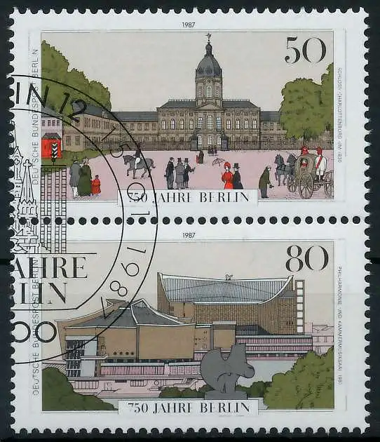 Senkrechter Zusammendruck 50+80 Pfg aus der Blockausgabe 750 Jahre Berlin (MichelNr.: 1084, 773, 775)