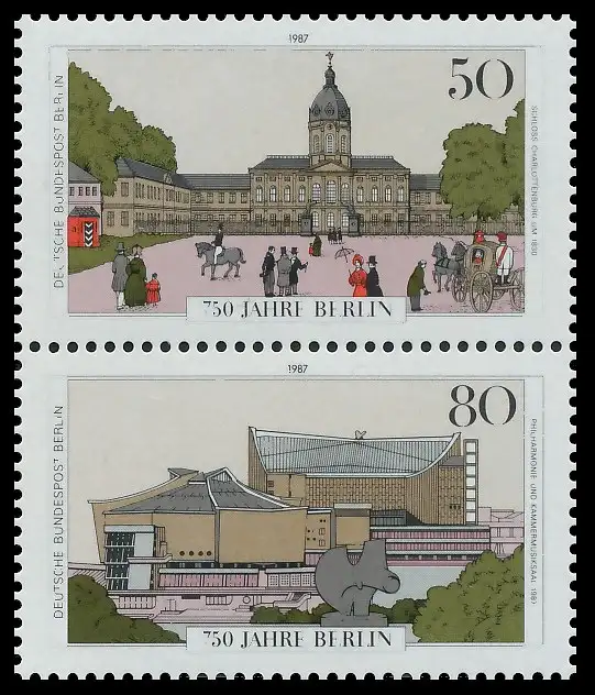 Senkrechter Zusammendruck 50+80 Pfg aus der Blockausgabe 750 Jahre Berlin (MichelNr.: 1084, 773, 775)