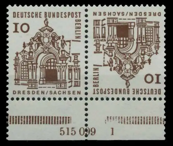10+10 Kehrdruck aus den Zusammendrucken Deutsche Bauwerke Berlin, waagerechte Linie gefaltet / dunkelbraun (MichelNr.: 1031004, 242a)