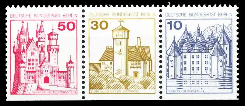 50+30+10 aus den Zusammendrucken Burgen und Schlösser Berlin, 50er leichte senkrechte Bugspur (MichelNr.: 1091064, 532D, 534D, 536D)