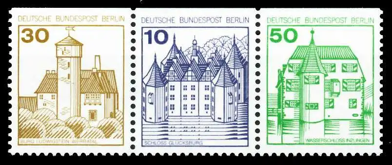 30+10+50 aus den Zusammendrucken Burgen und Schlösser Berlin (MichelNr.: 1101071, 532C, 534C, 615C)