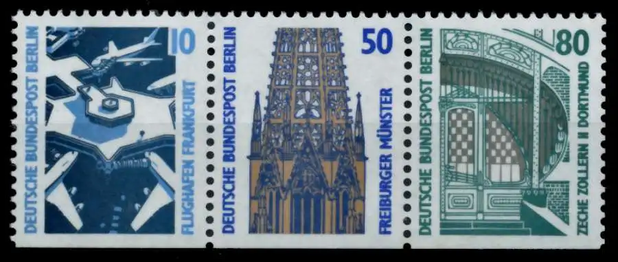 10+50+80 unten geschnitten aus den Zusammendrucken Sehenswürdigkeiten Berlin (MichelNr.: 1131086, 794D, 796D, 798D)