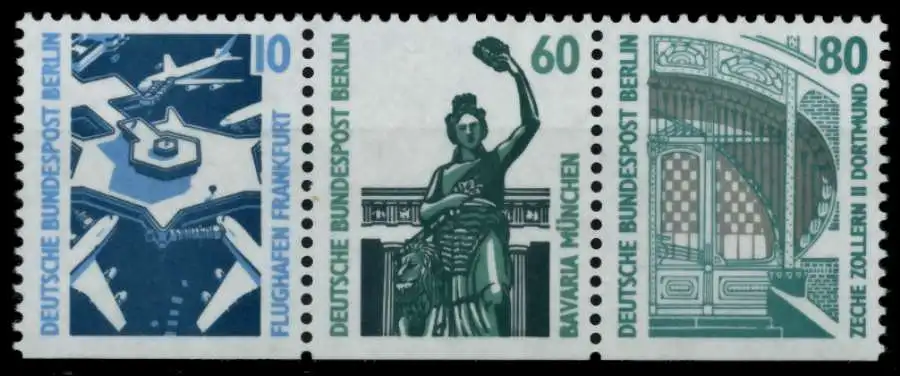 10+60+80 unten geschnitten aus den Zusammendrucken Sehenswürdigkeiten Berlin (MichelNr.: 1141092, 795D, 796D, 798D)