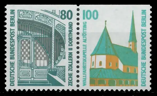 80+100 oben geschnitten aus den Zusammendrucken Sehenswürdigkeiten Berlin (MichelNr.: 1141097, 796C, 834C)