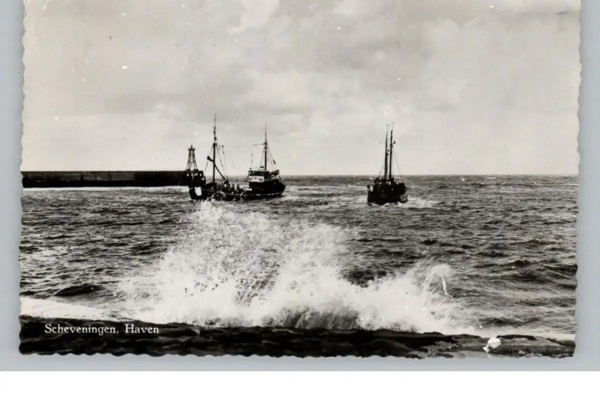 BERUFE - FISCHFANG, Fischerboote im Hafen von Scheveningen, 1959