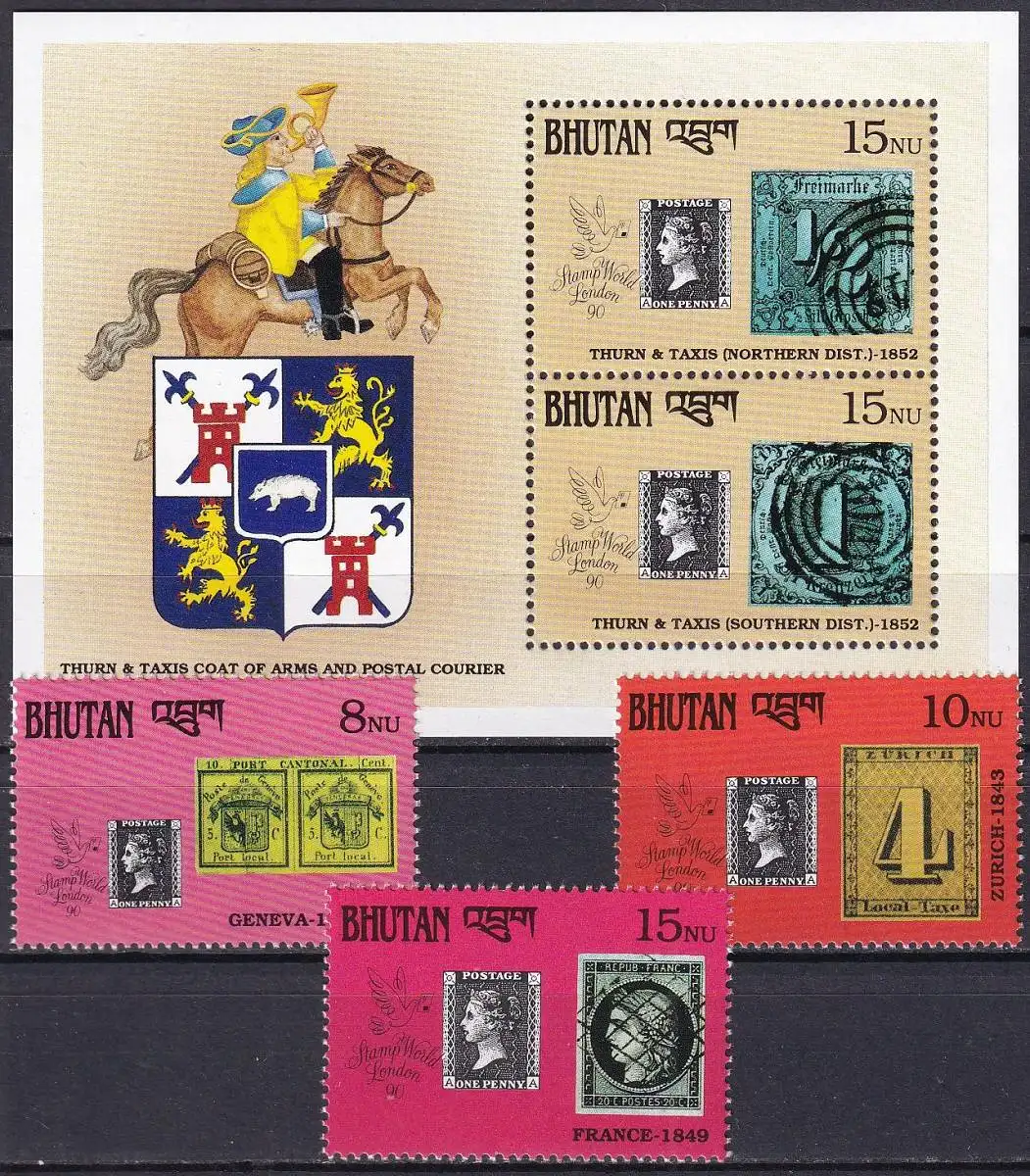 BHUTAN 1990 Mi-Nr. Block 288 + 1353/55 ** MNH