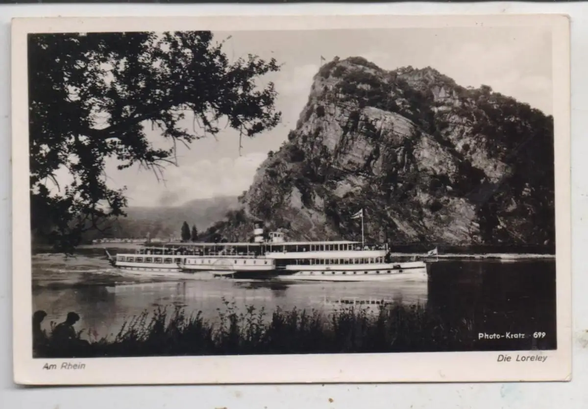 BINNENSCHIFFE - RHEIN, Köln-Düsseldorfer "OSTMARK" vor der Loreley, Kratz # 699, Verlag Bänisch & Matz - Köln, 1946