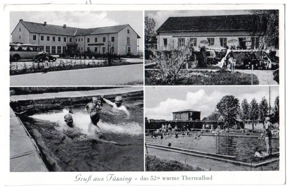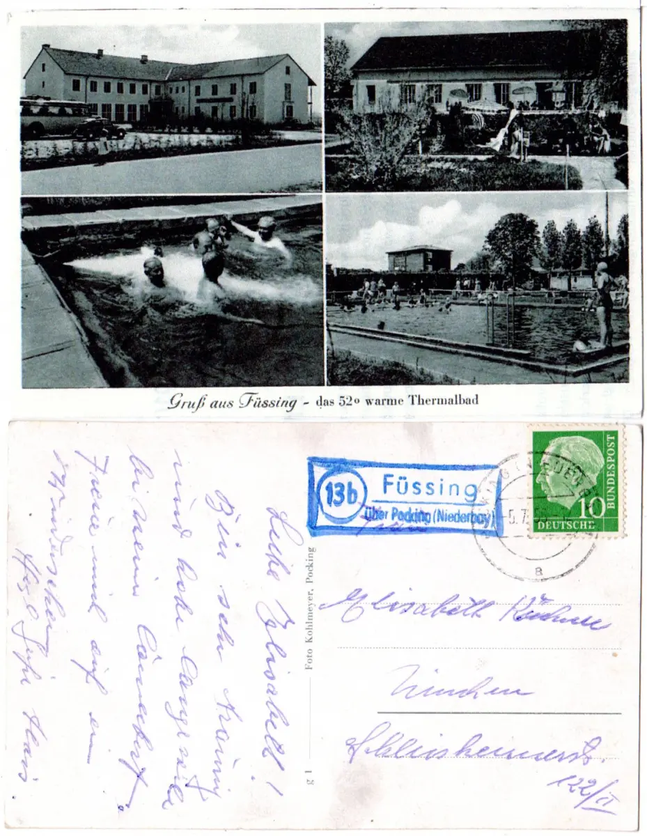 BRD 1955, Landpost Stpl. 13b FÜSSING über Pocking auf sw-AK m. 10 Pf.