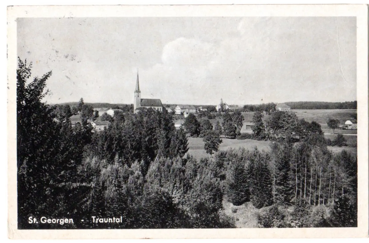BRD 1957, Landpost Stpl. 13b St. GEORGEN über Traunstein auf sw-AK m. 10 Pf.