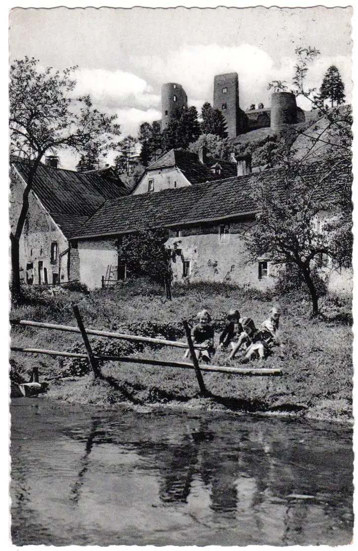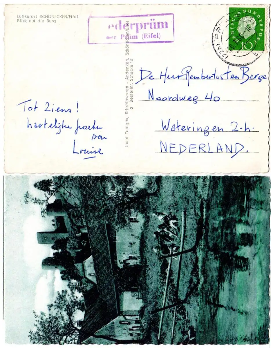 BRD 1957, Landpost Stpl. NIEDERPRÜM über Prüm auf Schönecken sw-AK m. 10 Pf.