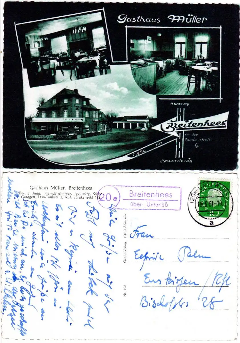 BRD 1961, Landpost Stpl. 20a BREITENHEES über Unterlüß auf Gasthaus sw-AK