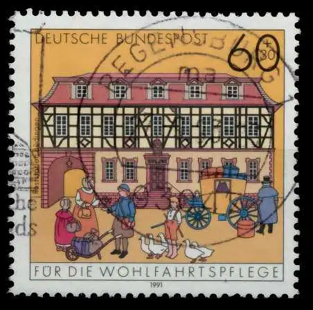 60 + 30 Pfg Wert aus der Ausgabe Wohlfahrt 1991 - Postämter