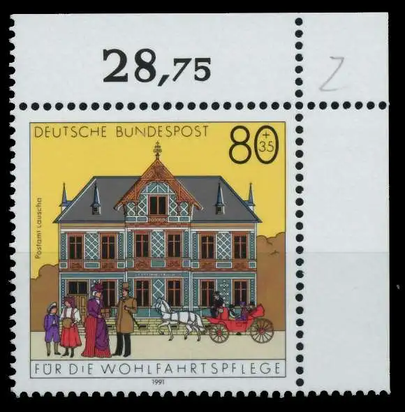 80 + 35 Pfg Wert aus der Ausgabe Wohlfahrt 1991 - Postämter