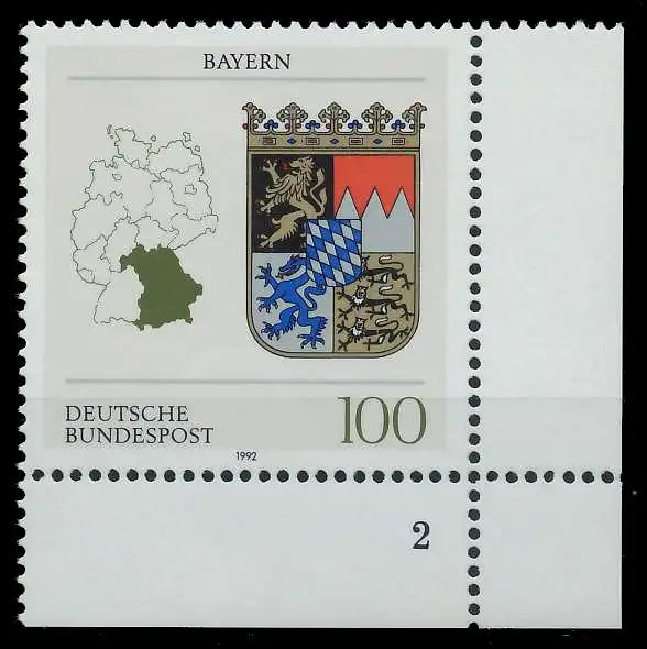 100 Pfg Wert aus der Ausgabe Wappen der Länder - Bayern