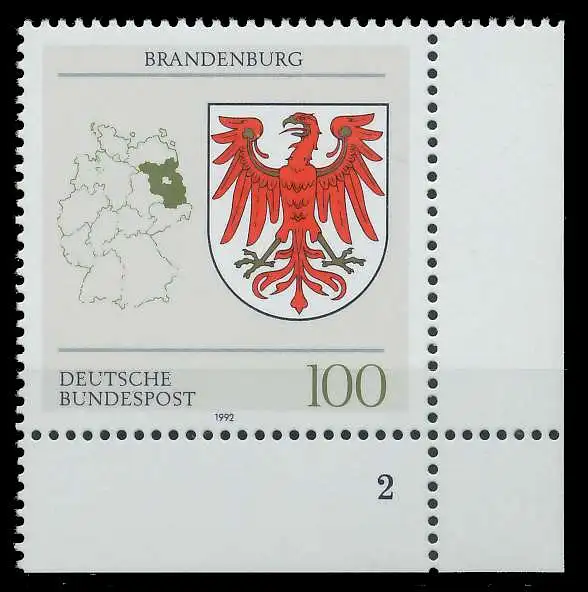 100 Pfg Wert aus der Ausgabe Wappen der Länder - Brandenburg