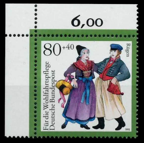 80 + 40 Pfg Wert aus der Ausgabe Wohlfahrt 1993 - Trachten