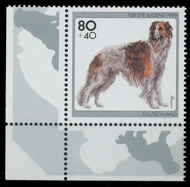 80 + 40 Pfg Wert aus der Ausgabe Jugend 1996 - Hunde