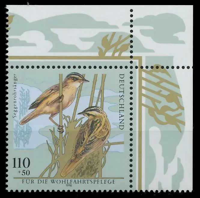 110 + 50 Pfg Wert aus der Ausgabe Wohlfahrt 1998 - Vögel
