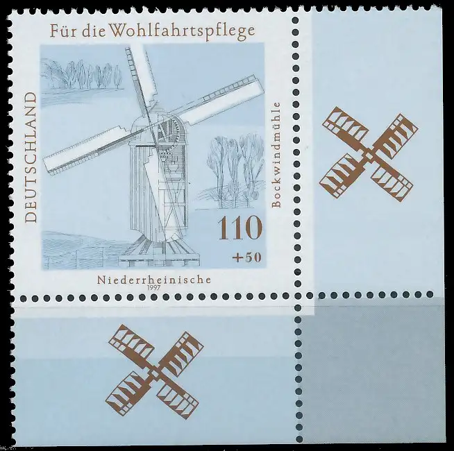 110 + 50 Pfg Wert aus der Ausgabe Wohlfahrt - Wasser- und Windmühlen