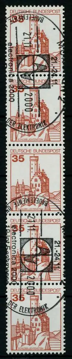 035 Pfg Wert aus der Ausgabe Burgen und Schlösser, 5er Streifen, mit Nummer 0010
