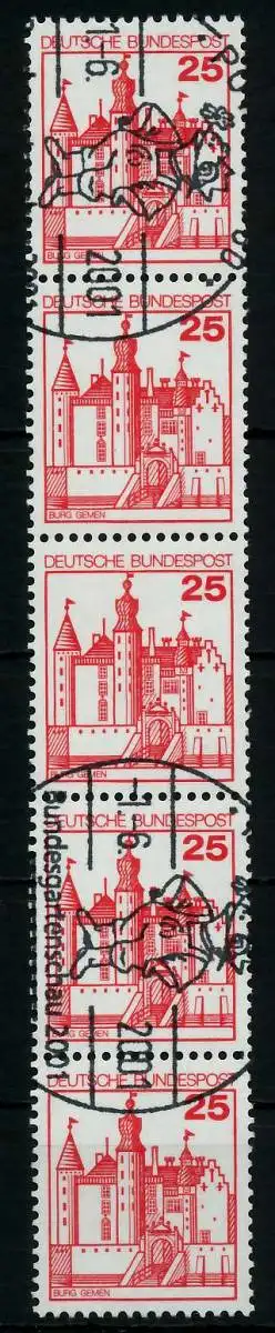 025 Pfg Wert aus der Ausgabe Burgen und Schlösser, 5er Streifen, mit Nummer 195