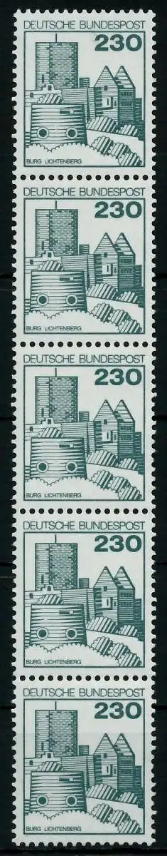 230 Pfg Wert aus der Ausgabe Burgen und Schlösser, 5er Streifen, mit Nummer 090