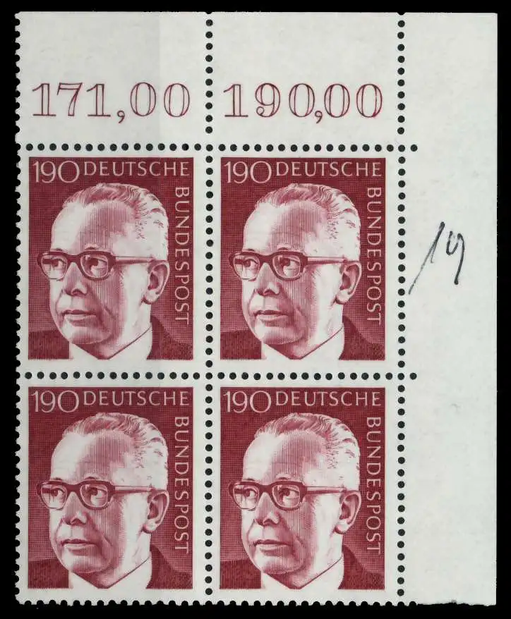 BRD DS HEINEM Nr 732 postfrisch VIERERBLOCK ECKE-ORE 74B74E
