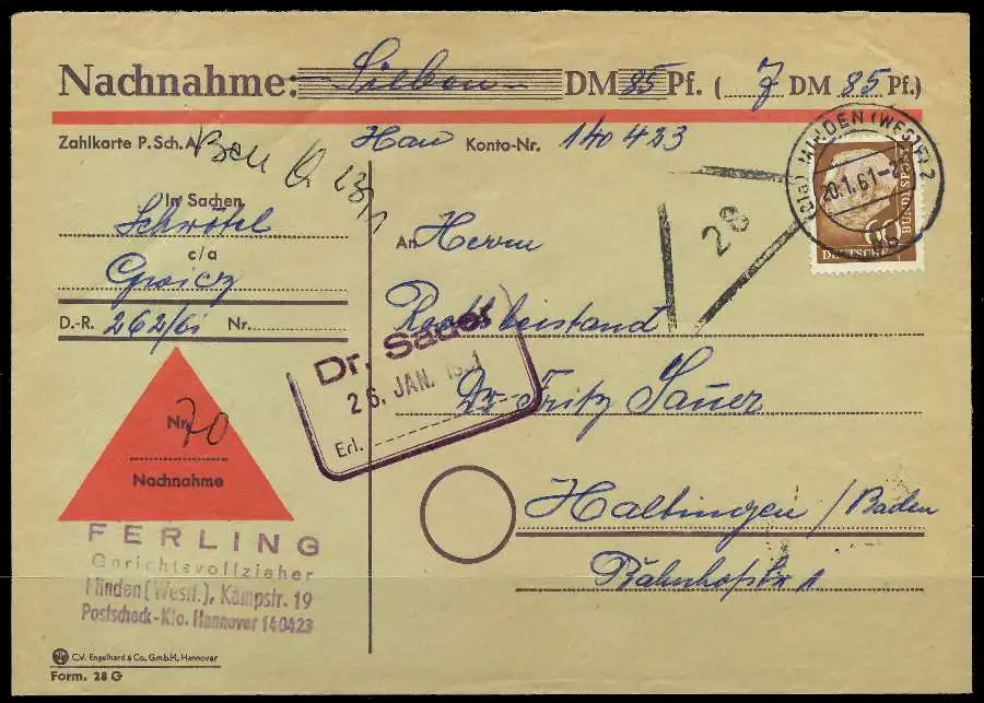 60Pfg Wert aus der Ausgabe Heuss II, weisses Papier