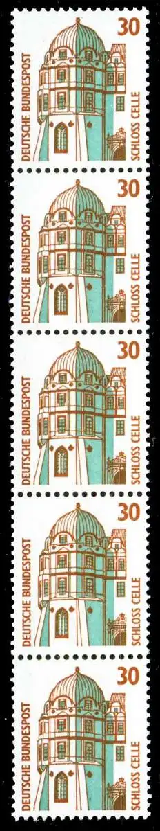 030 Pfg Wert aus der Ausgabe Sehenswürdigkeiten, 5er Streifen, mit Nr.: 375