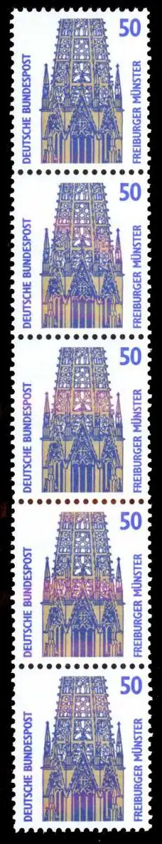050 Pfg Wert aus der Ausgabe Sehenswürdigkeiten, 5er Streifen, mit Nr.: 245