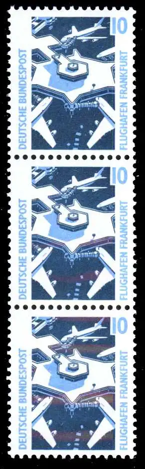 010 Pfg Wert aus der Ausgabe Sehenswürdigkeiten, 3er Streifen, eine Marke mit rückseitiger Nummer 480