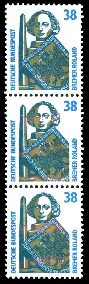 038 Pfg Wert aus der Ausgabe Sehenswürdigkeiten, 3er Streifen, mit Nummer 0760