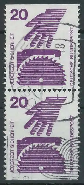 020 Pfg Wert aus der Ausgabe Unfallverhütung, oben und unten geschnitten aus Markenheftchen, senkrechtes Paar