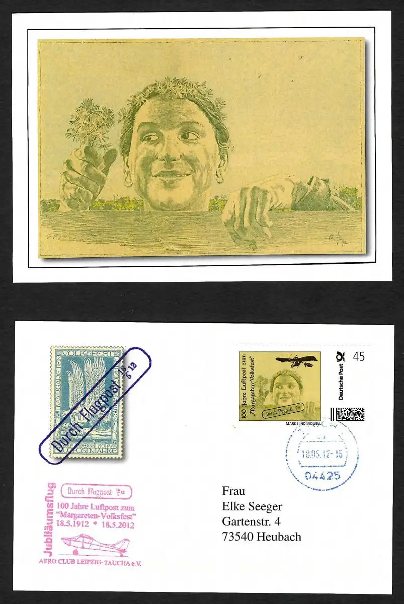 BRD: Erinnerungskarte 100 Jahre Flugpost: Flugpost Leipzig-Lindenthal, 2012