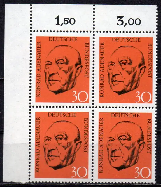 BRD, Mi-Nr. 567 **, 4´er-Block, Eckrand OL, Konrad Adenauer