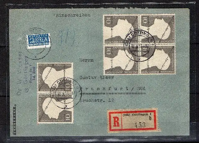 BRD, Michel NR. 165 Mehrfachfrankatur auf portogerechtem Einschreiben und 2 Pf. Notopfer.