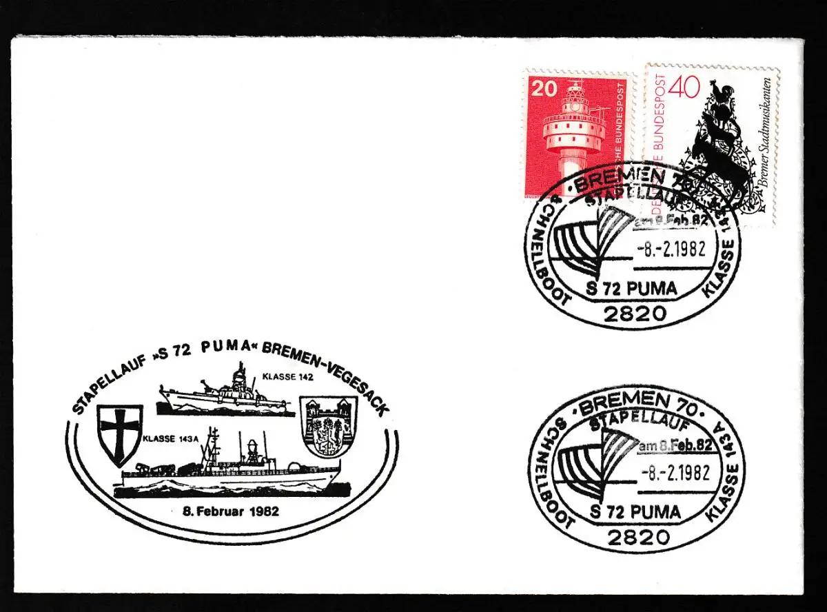 BREMEN 1 2800 SCHNELLBOOT KLASSE 143A STAPELLAUF am 8.Feb.82 S 72 PUMA 8.2.1982