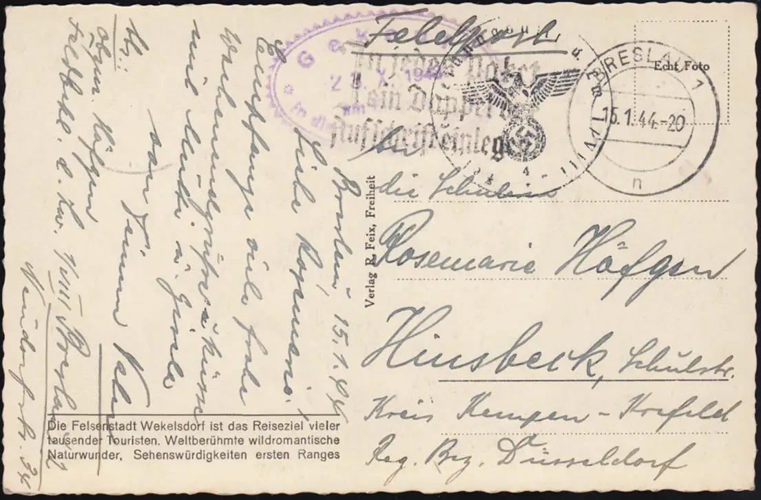 BS Feldbekleidungsamt der Luftwaffe 1/VIIII, AK Felsenstadt Wekelsdorf, 15.1.44