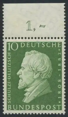 BUND 1958 Michel-Nummer 0293 postfrisch EINZELMARKE RAND oben (a)