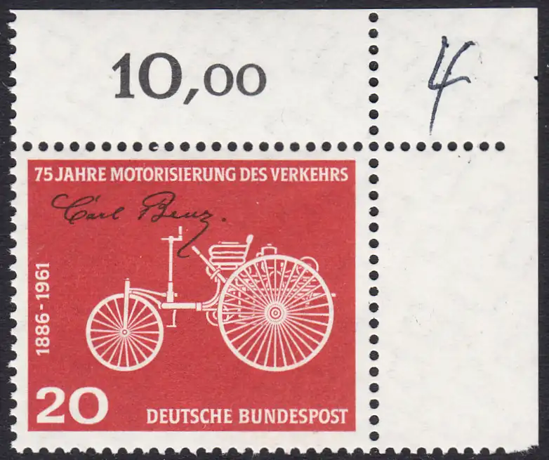BUND 1961 Michel-Nummer 0364 postfrisch EINZELMARKE ECKRAND oben rechts