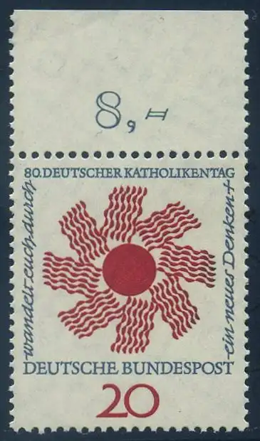 BUND 1964 Michel-Nummer 0444 postfrisch EINZELMARKE RAND oben (d)