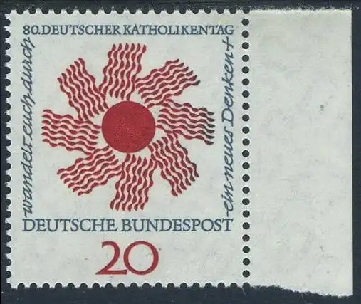 BUND 1964 Michel-Nummer 0444 postfrisch EINZELMARKE RAND rechts