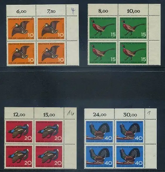 BUND 1965 Michel-Nummer 0464-0467 postfrisch SATZ(4) BLÖCKE ECKRAND oben rechts