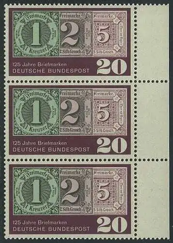 BUND 1965 Michel-Nummer 0482 postfrisch vert.STRIP(3) RAND rechts